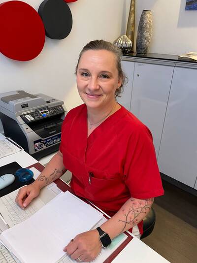![]() Frau A. Kuhl ist schwerpunktmäßig im Bereich des ambulanten OP tätig und sorgt außerdem für den Materialbedarf der Praxis.